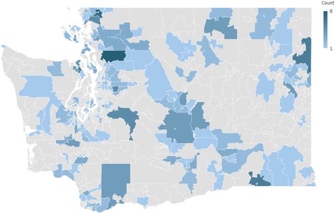 Distribution of survey respondents across Washington by farm zip code